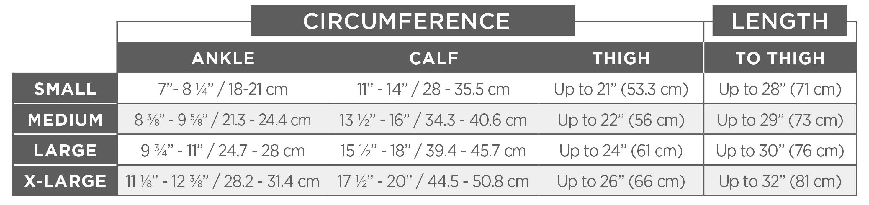 *Measurements must be taken by pulling the measuring tape snugly around the leg but without constricting the skin