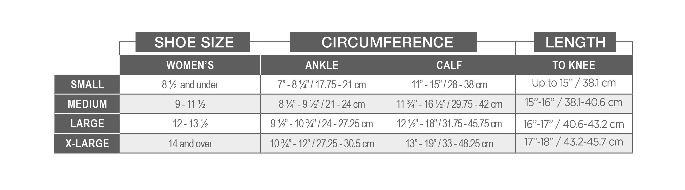 *Measurements must be taken by pulling the measuring tape snugly around the leg but without constricting the skin