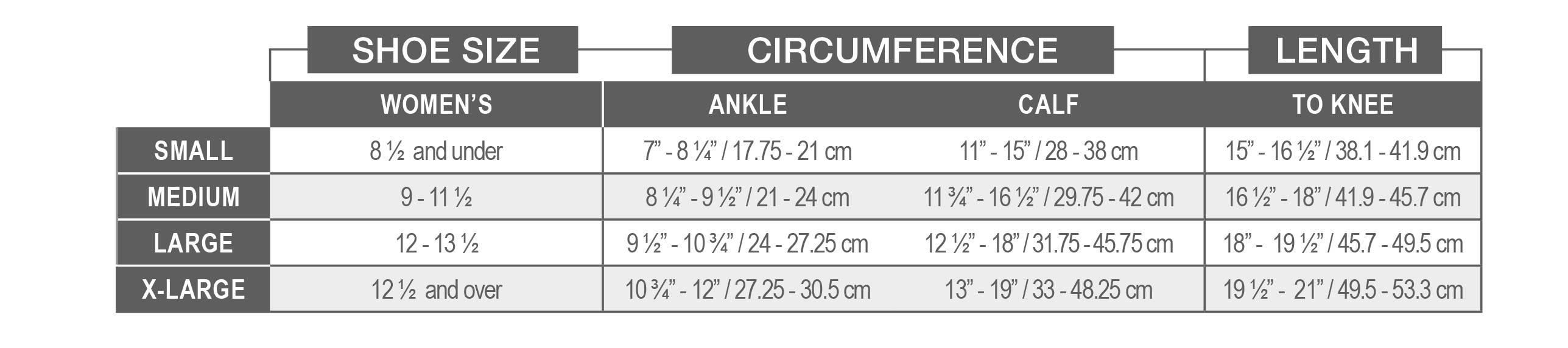 *Measurements must be taken by pulling the measuring tape snugly around the leg but without constricting the skin