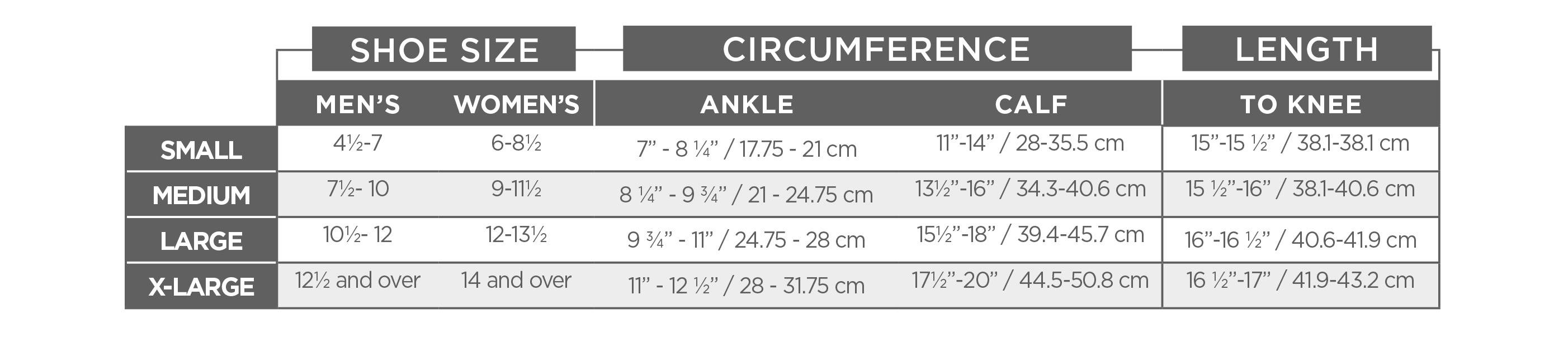 *Measurements must be taken by pulling the measuring tape snugly around the leg but without constricting the skin